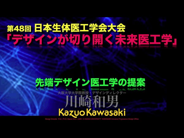 「先端デザイン医工学の提案」と題して川崎教授の講演が行われました。医療と工学との学際領域にあたる本学会には、医学系や工学系をバックボーンとした研究者を中心として来場者を集めました。